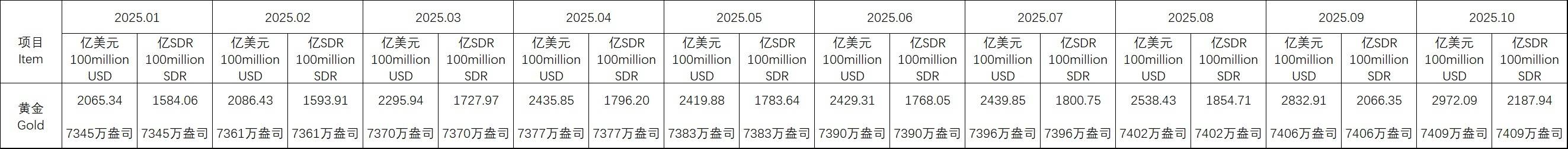 今年1-10月央行黄金储备情况。数据来源:中国人民银行网站